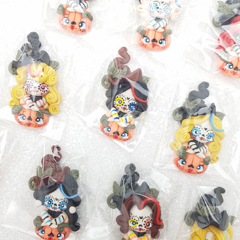 Set of 10 Halloween witch on pumpkin - Embellishment Clay Bow Centre