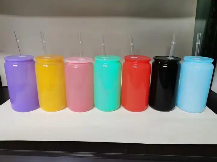 16oz Beer Glass Cup Clear coloured with plastic lid and plastic straw Libbey , Black - pink - blue - lilac - yellow - green - red