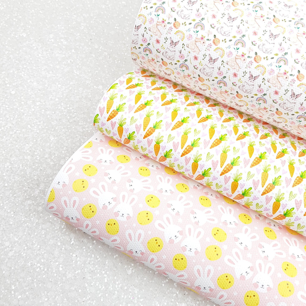 Easter carrot chick bunny rabbit - faux vegan Leather vinyl - canvas - choose Fabric material Sheets