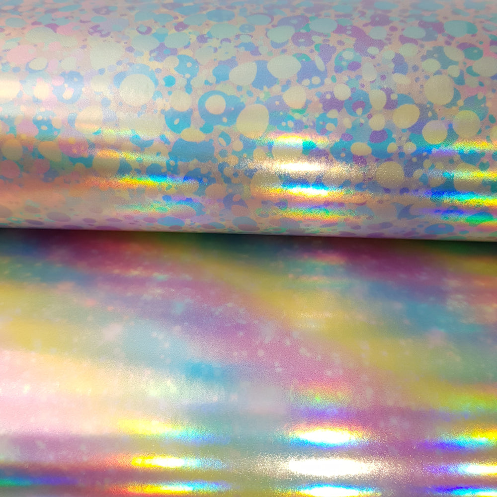 Rainbow Holographic cheetah spots - faux vegan Leather vinyl