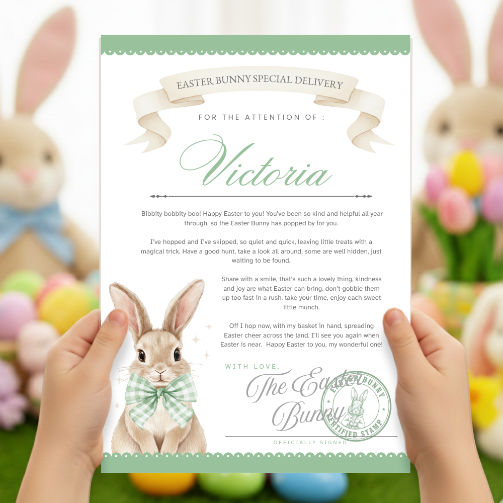 Printed range - A4 Easter cute bunny plaid brown special delivery certificate