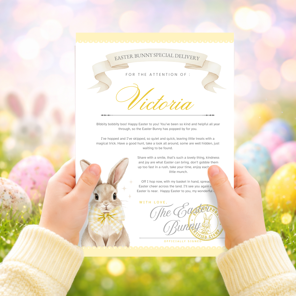 Printed range - A4 Easter bunny yellow special delivery certificate