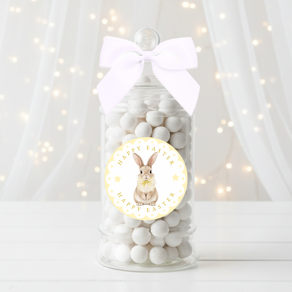 Label Sticker Circle - pack of 5 - yellow bunny rabbit happy easter