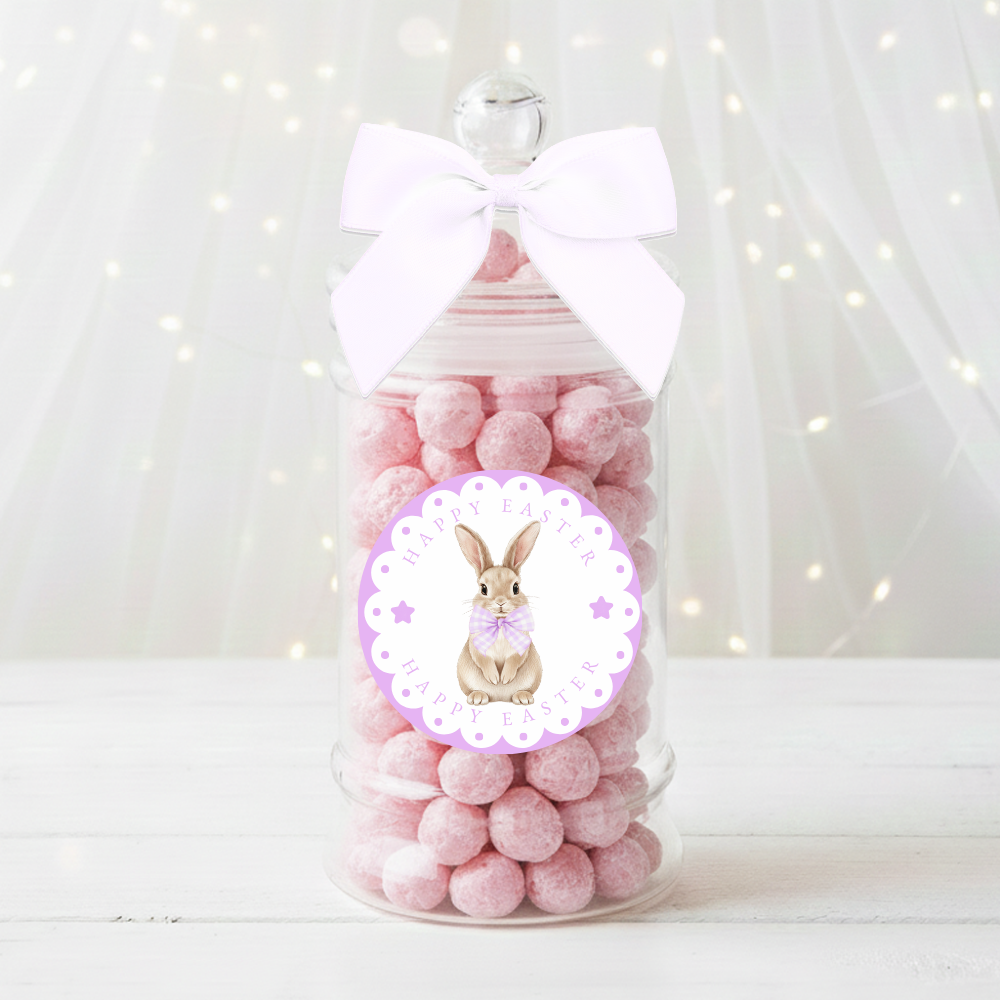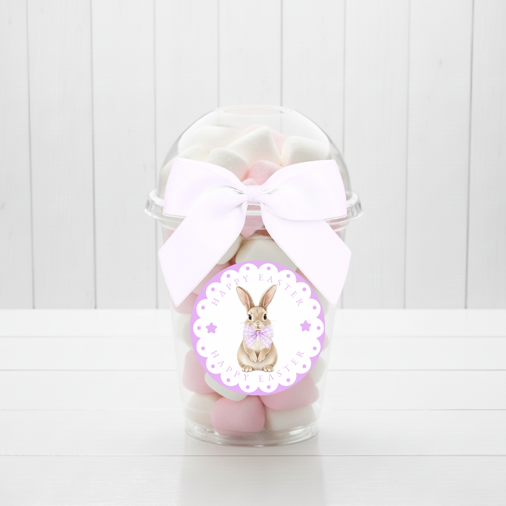 Label Sticker Circle - pack of 5 - bunny rabbit gingham lilac bow happy easter