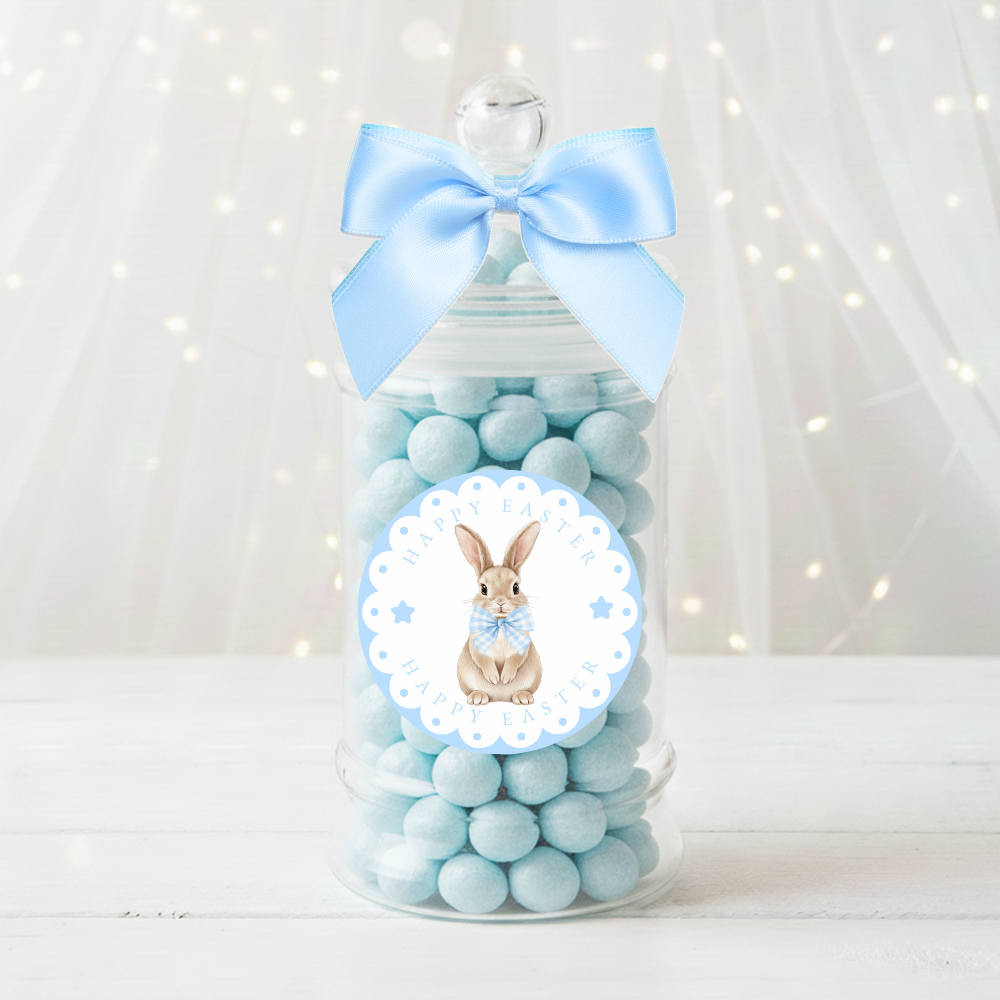 Label Sticker Circle - pack of 5 - blue bunny rabbit happy easter