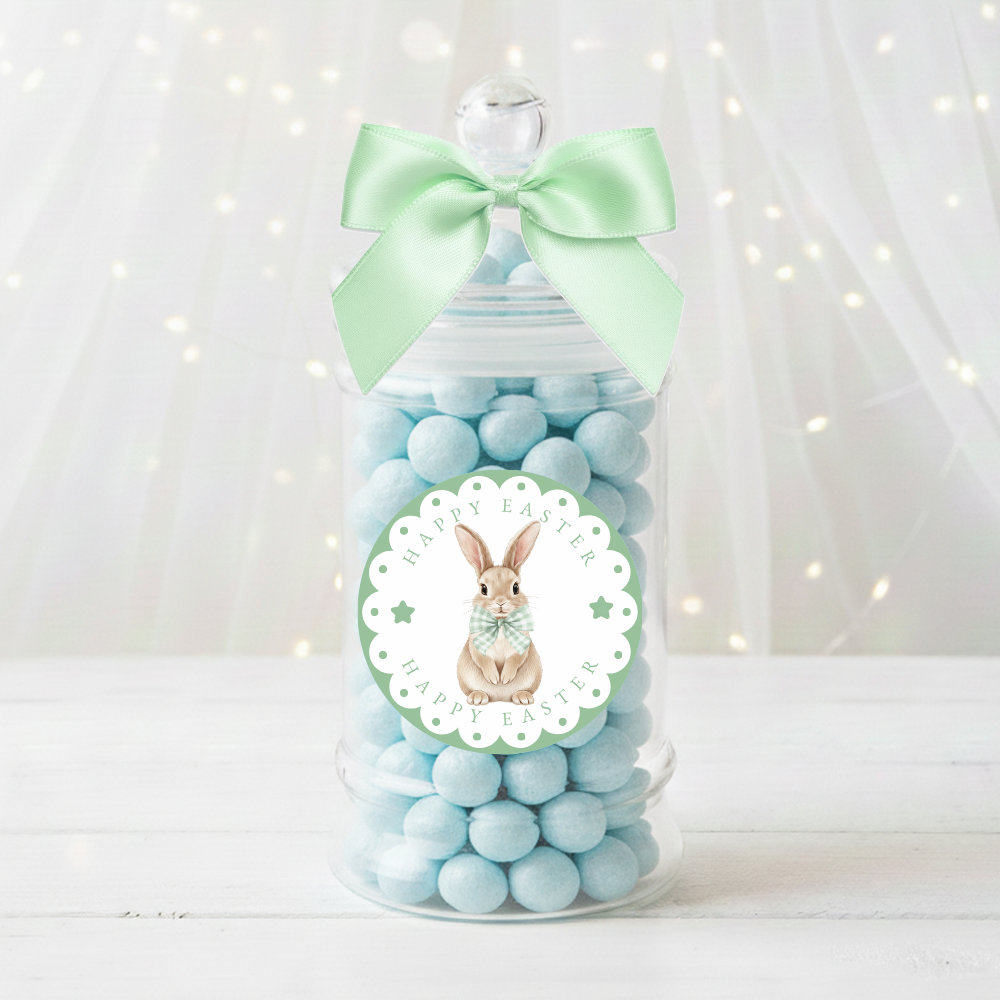 Label Sticker Circle - pack of 5 - green bunny rabbit happy easter