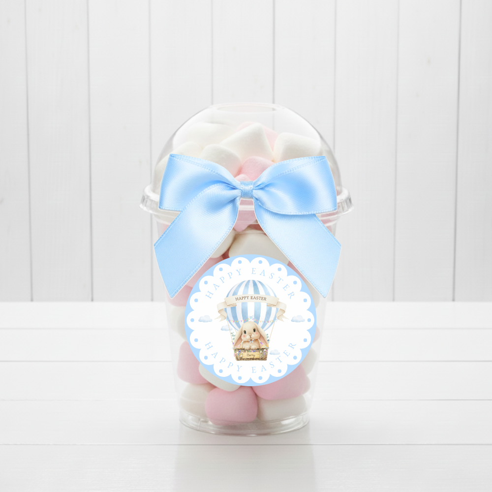 Label Sticker Circle - pack of 5 - blue bunny rabbit hot air balloon easter
