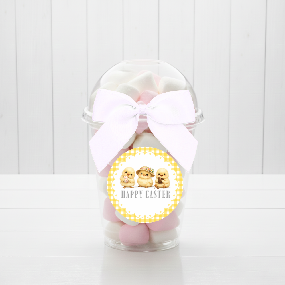 Label Sticker Circle - pack of 5 - yellow chick pink gingham easter