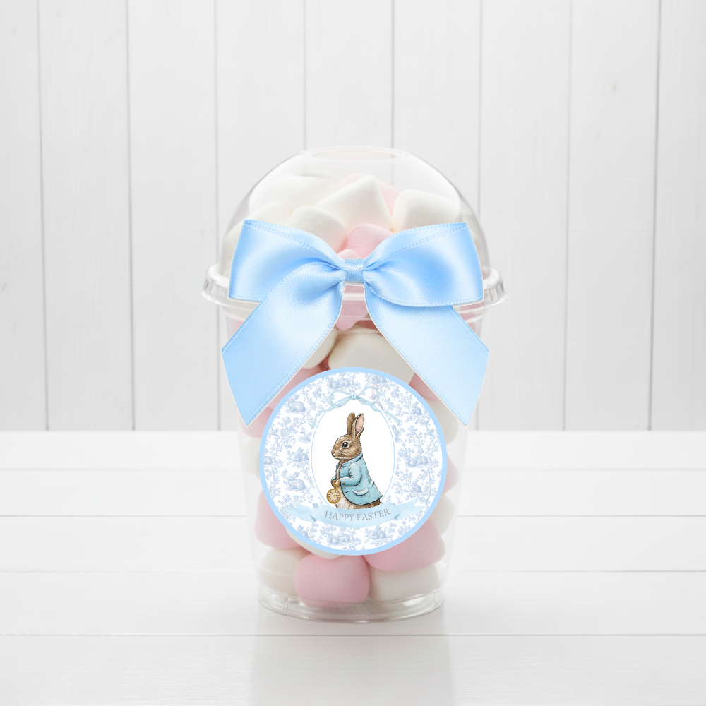 Label Sticker Circle - pack of 5 - blue rabbit bunny ornament easter