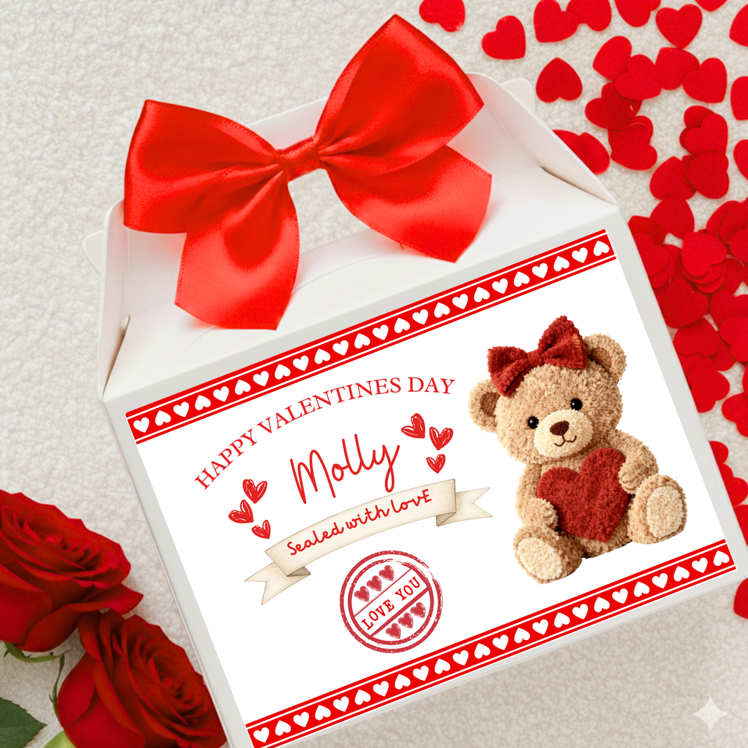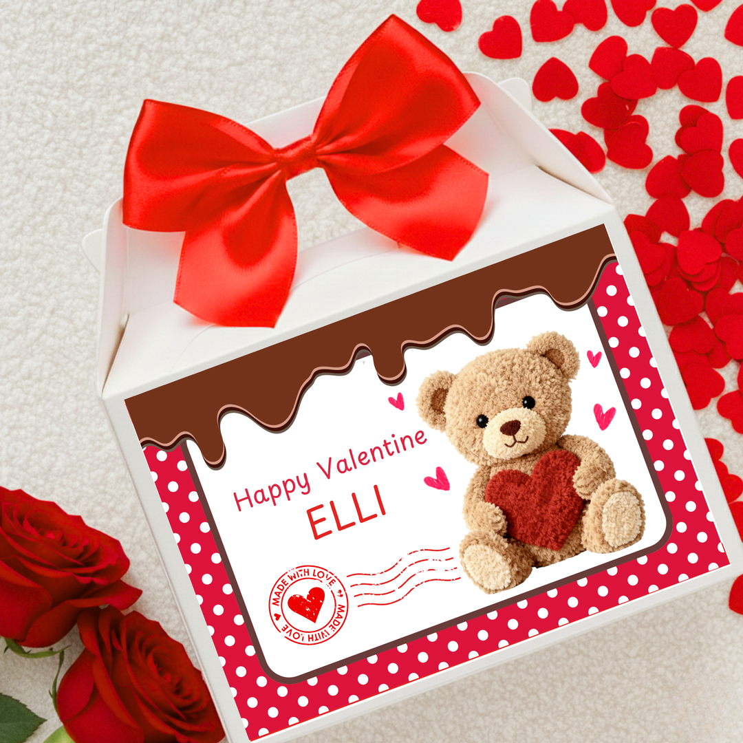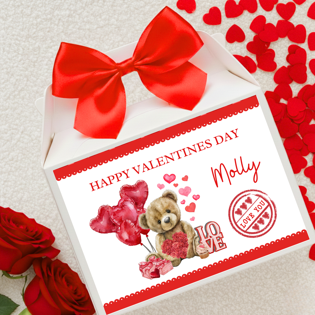 Label Sticker Party treat box - Happy Valentine bear chocolate