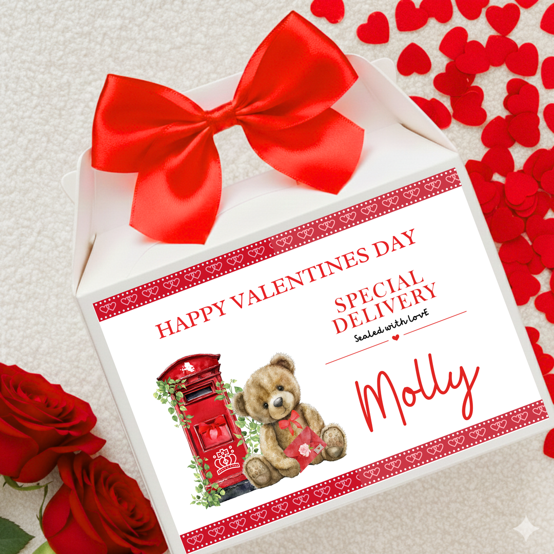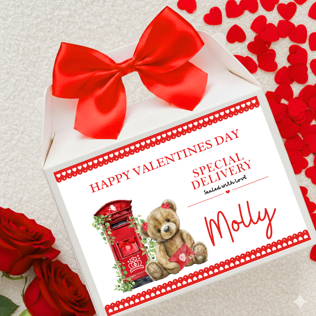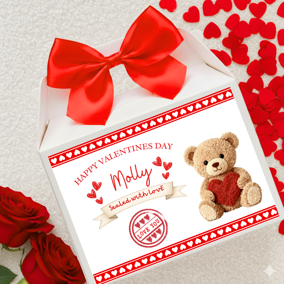 Label Sticker Party treat box - Happy Valentine bear chocolate