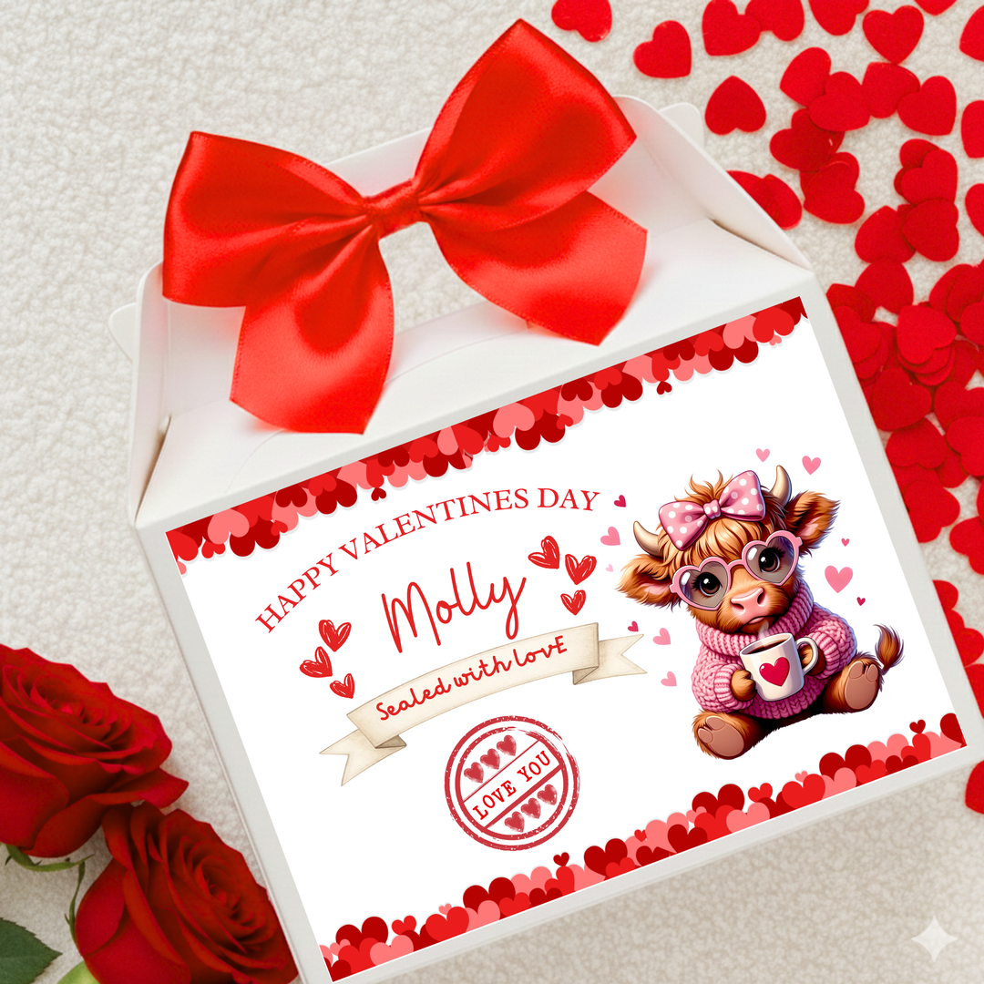 Label Sticker Party treat box - Highland cow sealed with love valentine