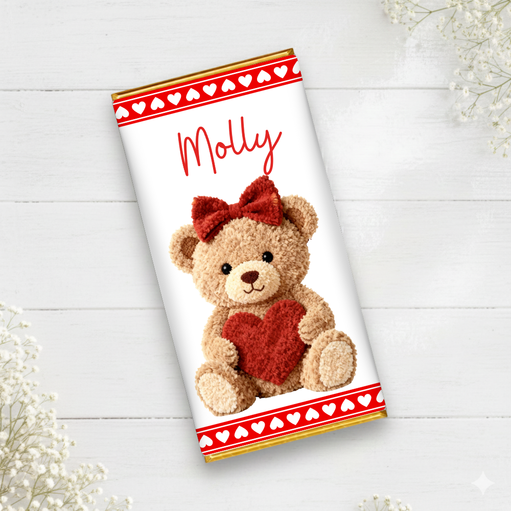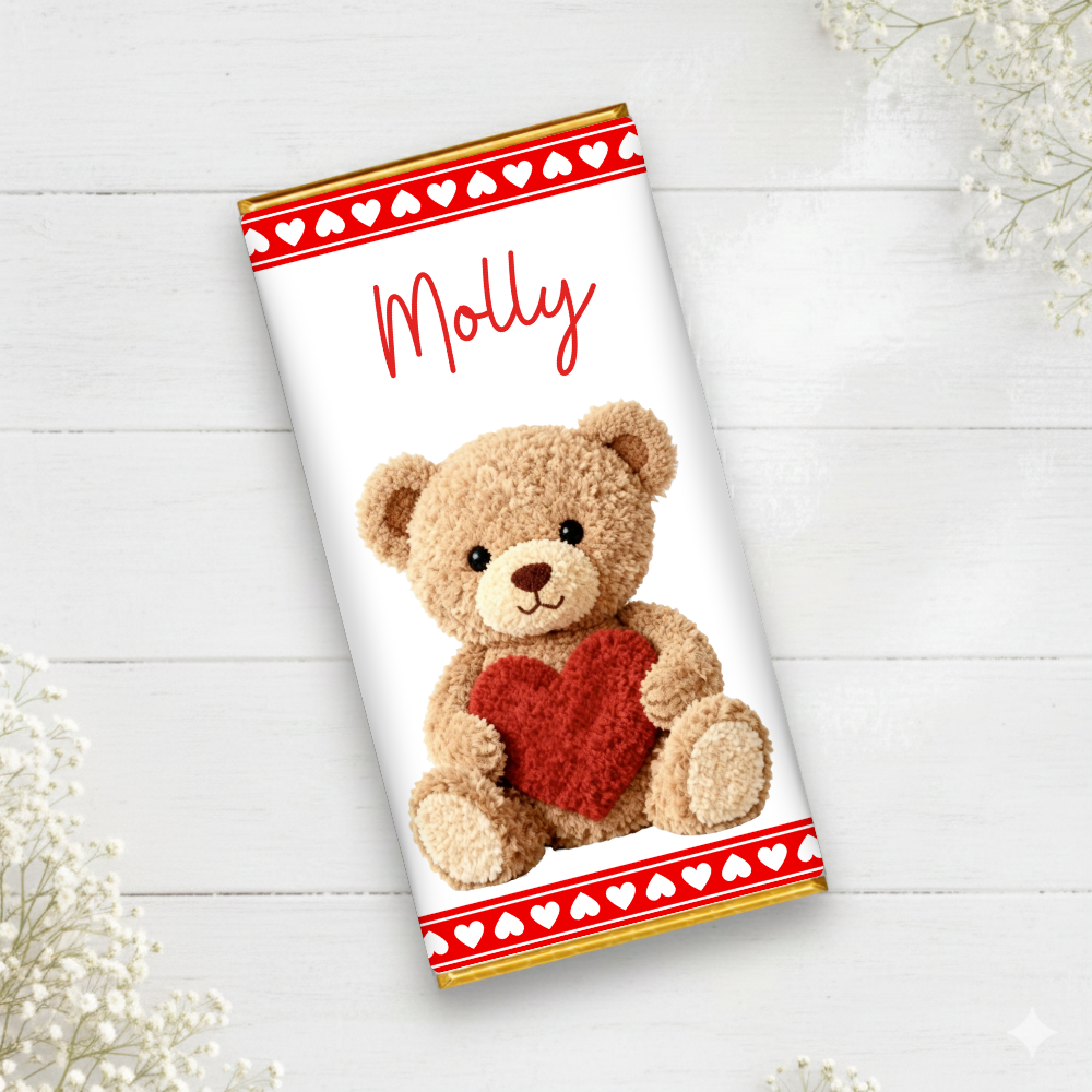Printed range - Chocolate Wrapper - teddy's heart valentine