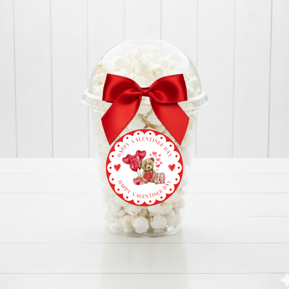 Label Sticker Circle - pack of 5 - balloon bear red valentine