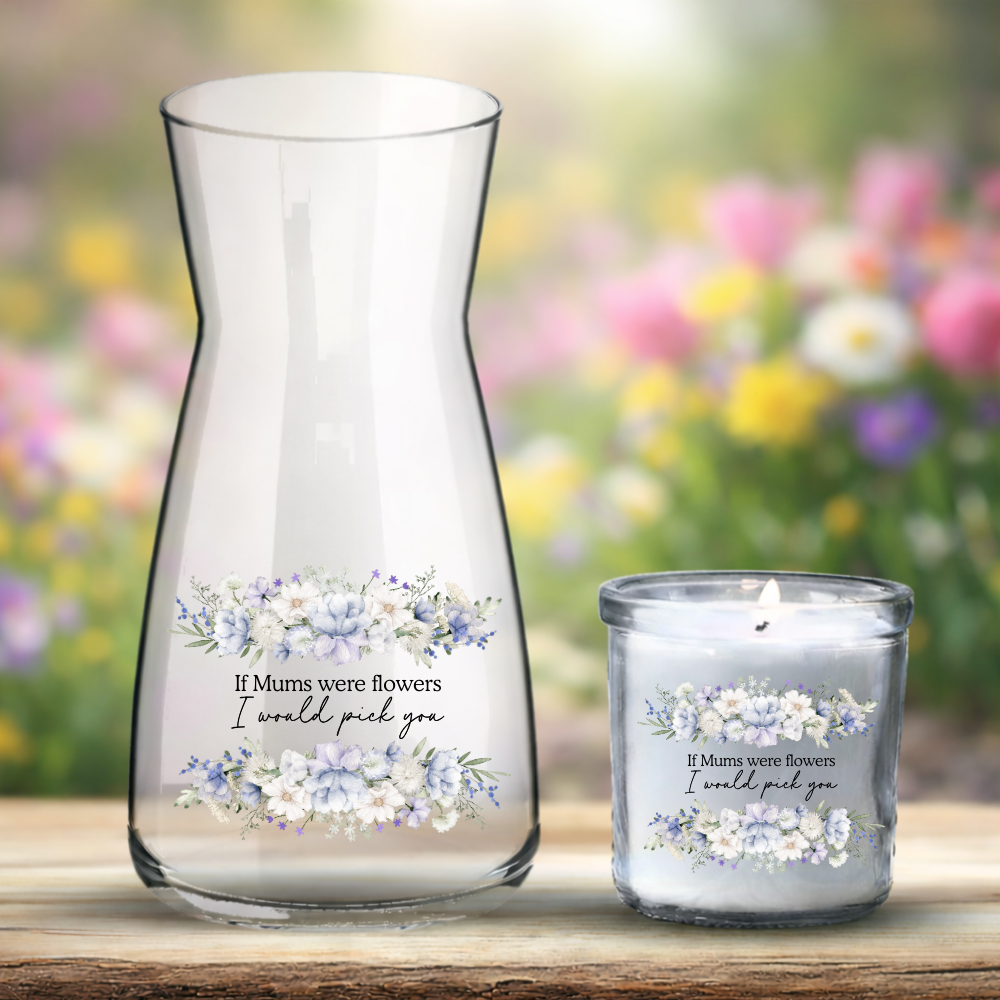 Mother's Day UV DTF decal - winter blue lilac flowers - Mum if you WERE FLOWERS I'D PICK YOU