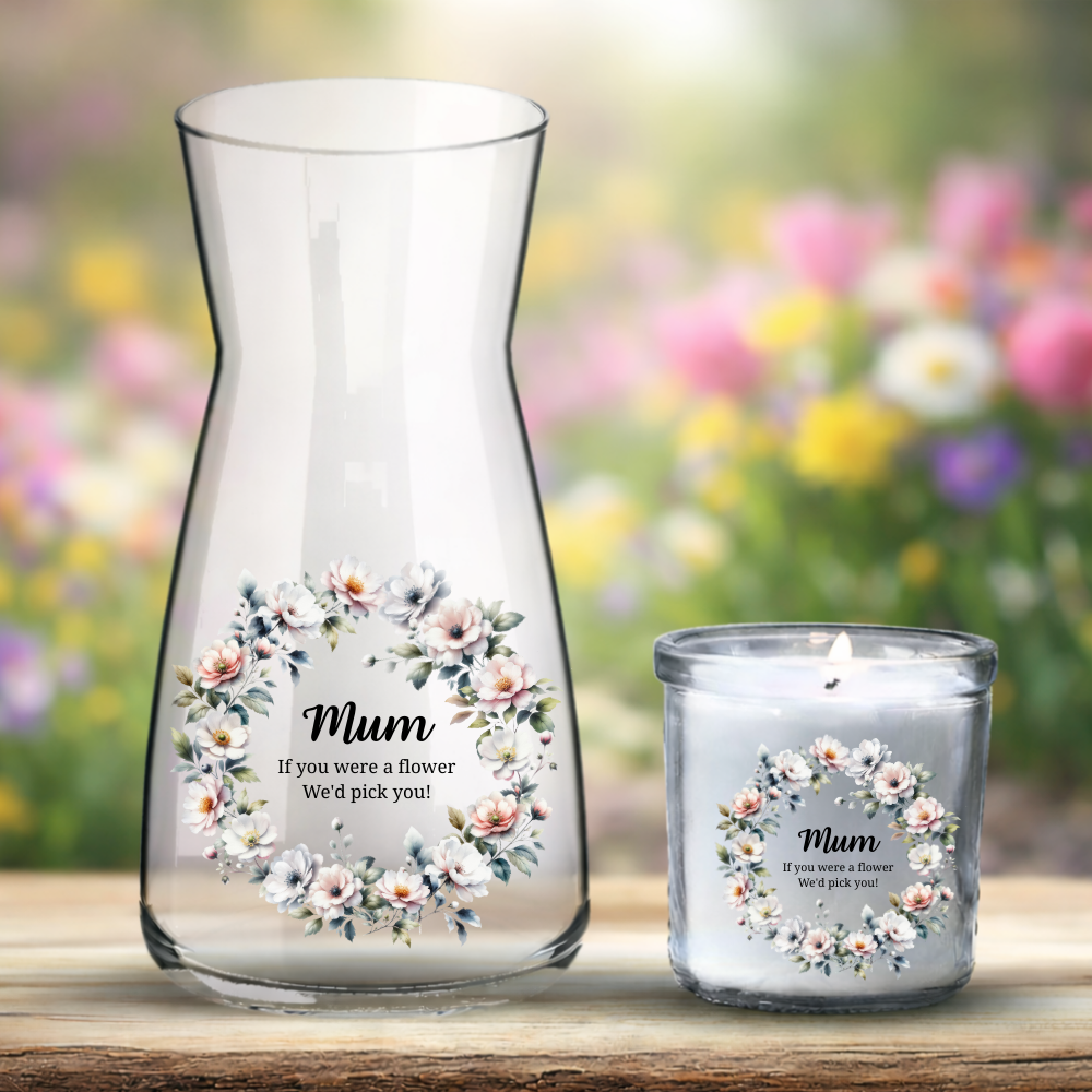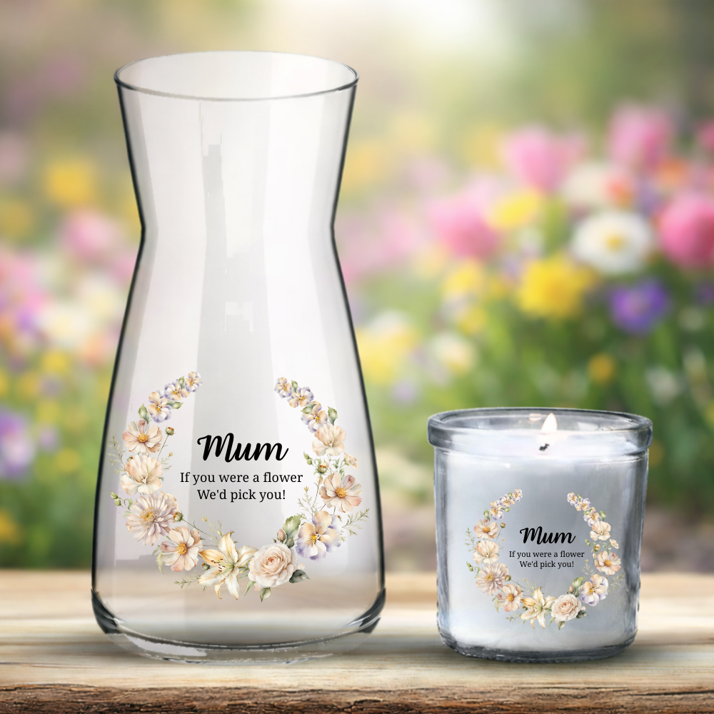 Mother's Day UV DTF decal - cold flowers wreath - Mum if you WERE FLOWERS I'D PICK YOU