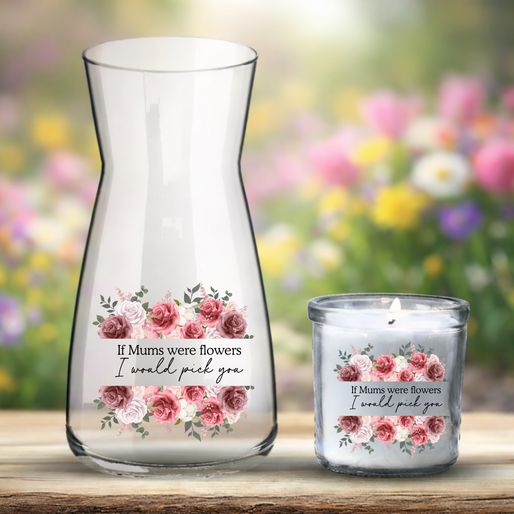 Mother's Day UV DTF decal - soft pink rose flowers - Mum if you WERE FLOWERS I'D PICK YOU