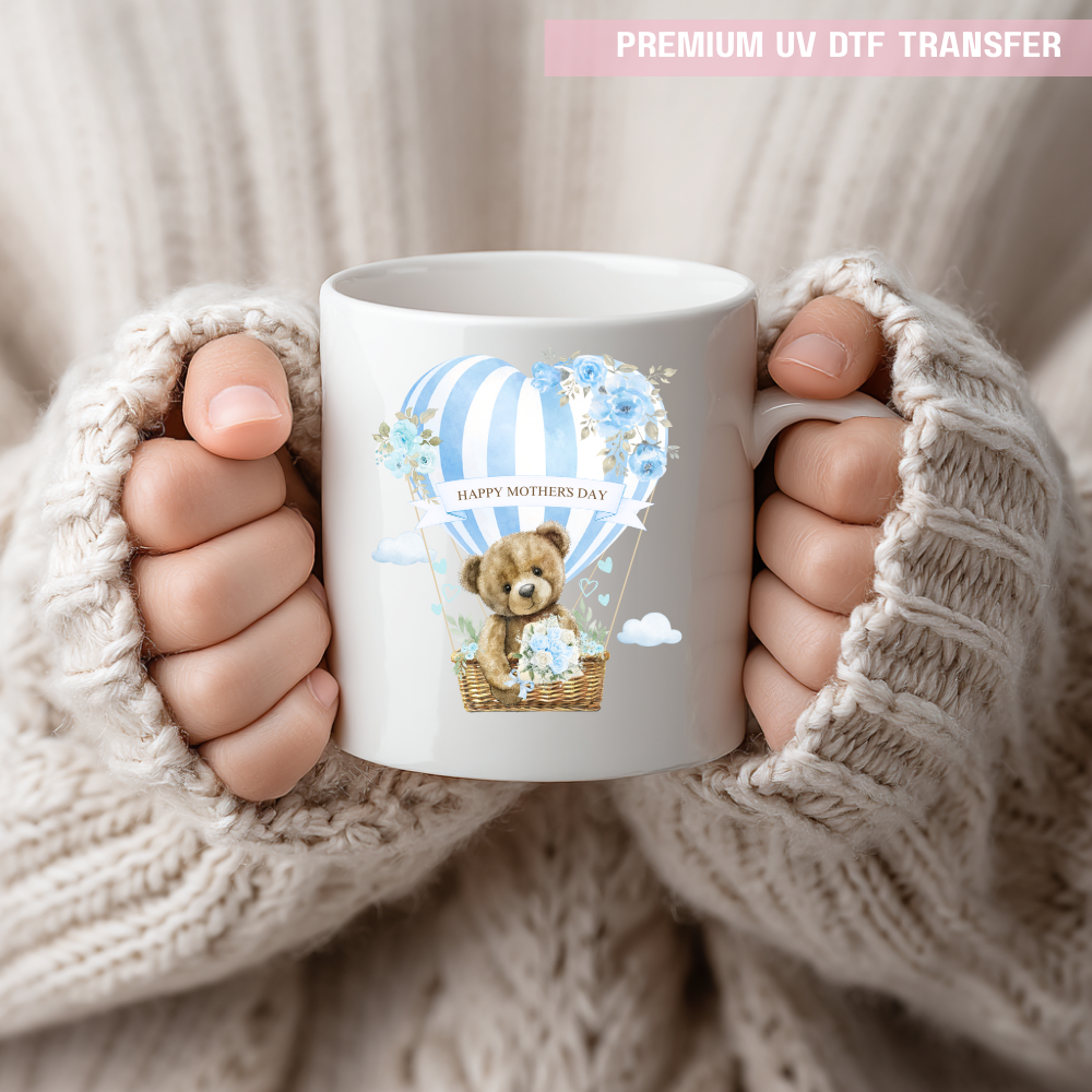 UV DTF decal - happy mothers day - blue heart balloon bear - Mothers day