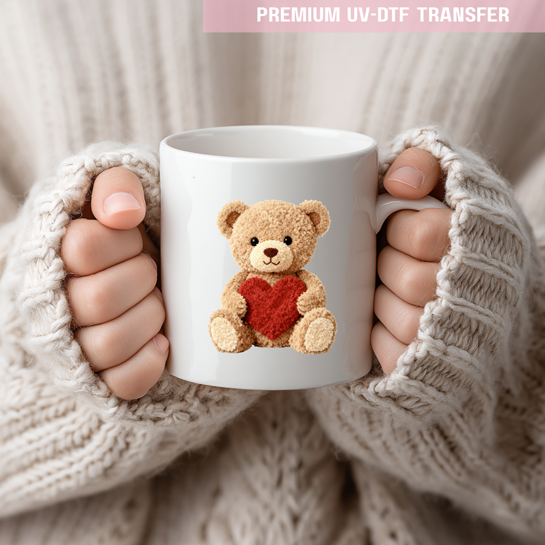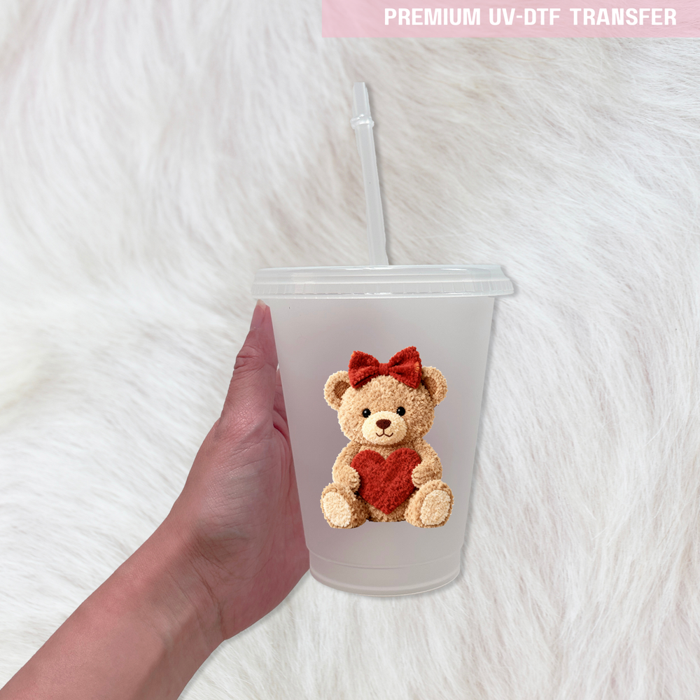 UV DTF decal - Hot air balloon bear - red love - Valentine