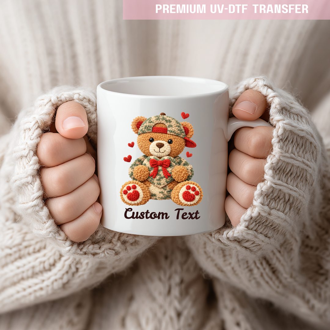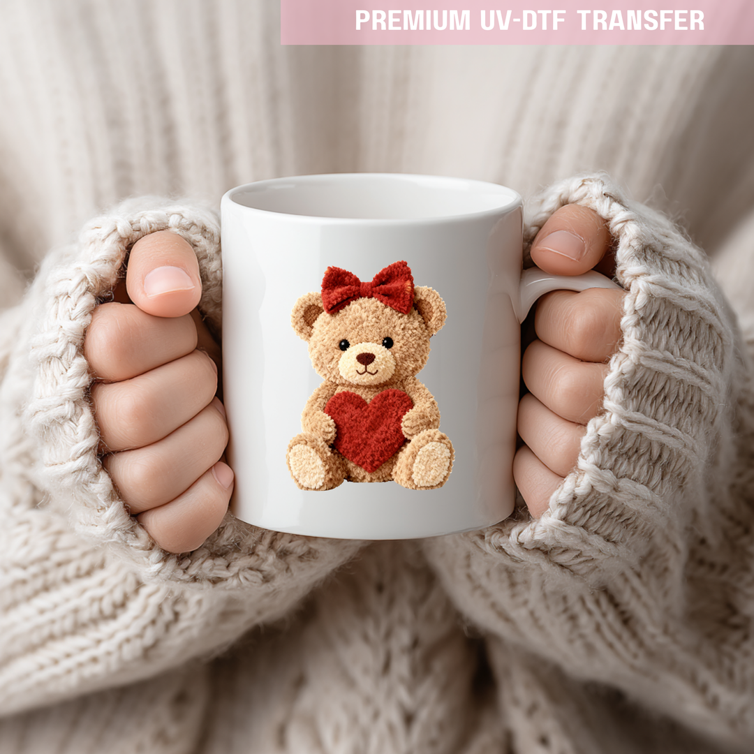 UV DTF decal - Cute leopard bear - red bow - Valentine