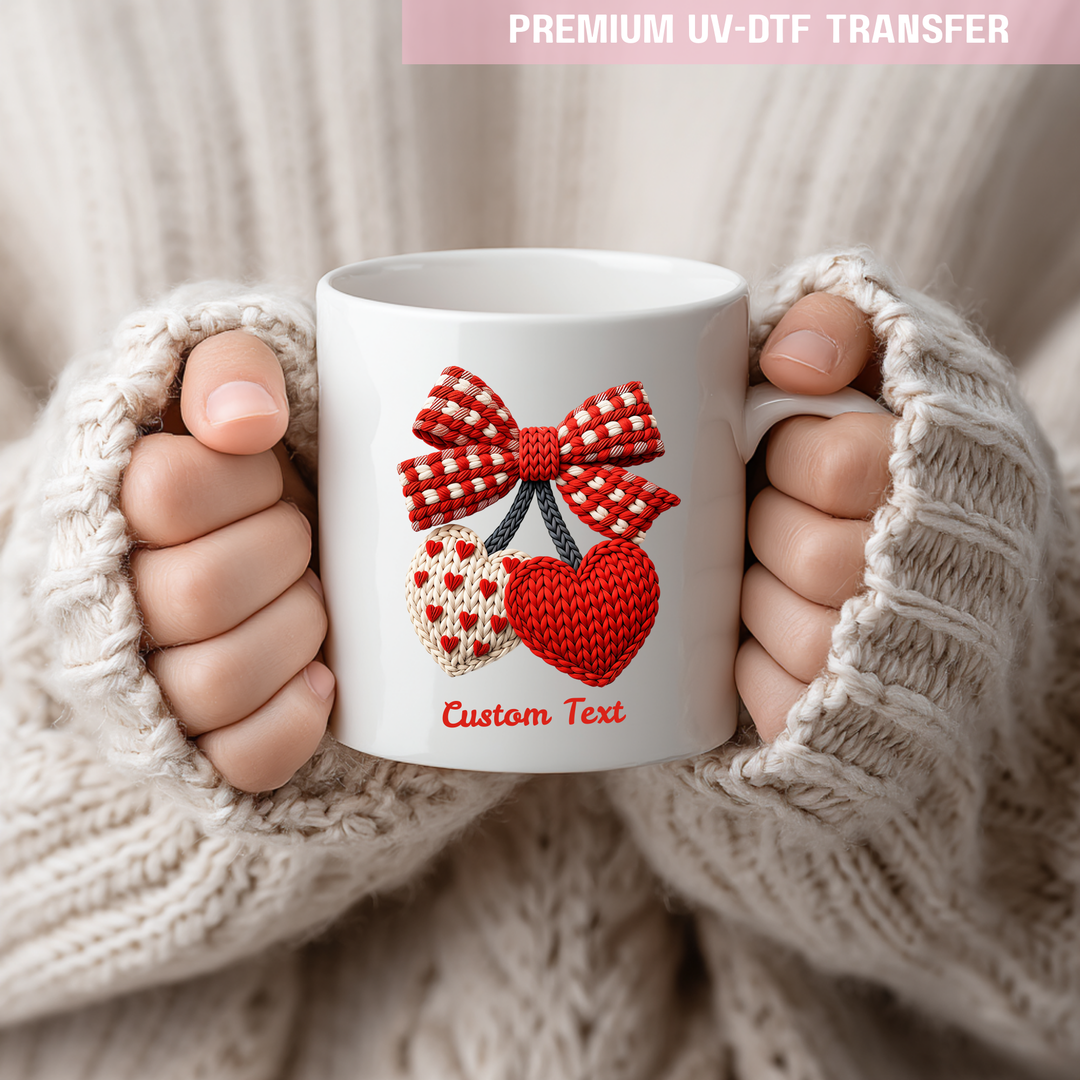 UV DTF decal - Two heart bow embroidery - red - Valentine