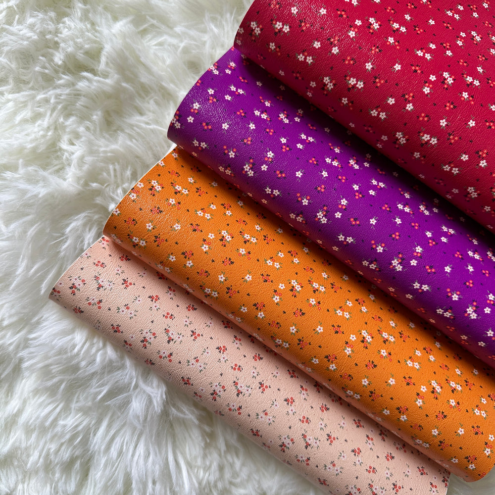 Fall Ditsy Floral - faux Pu Leather vinyl - canvas - choose Fabric material Sheets
