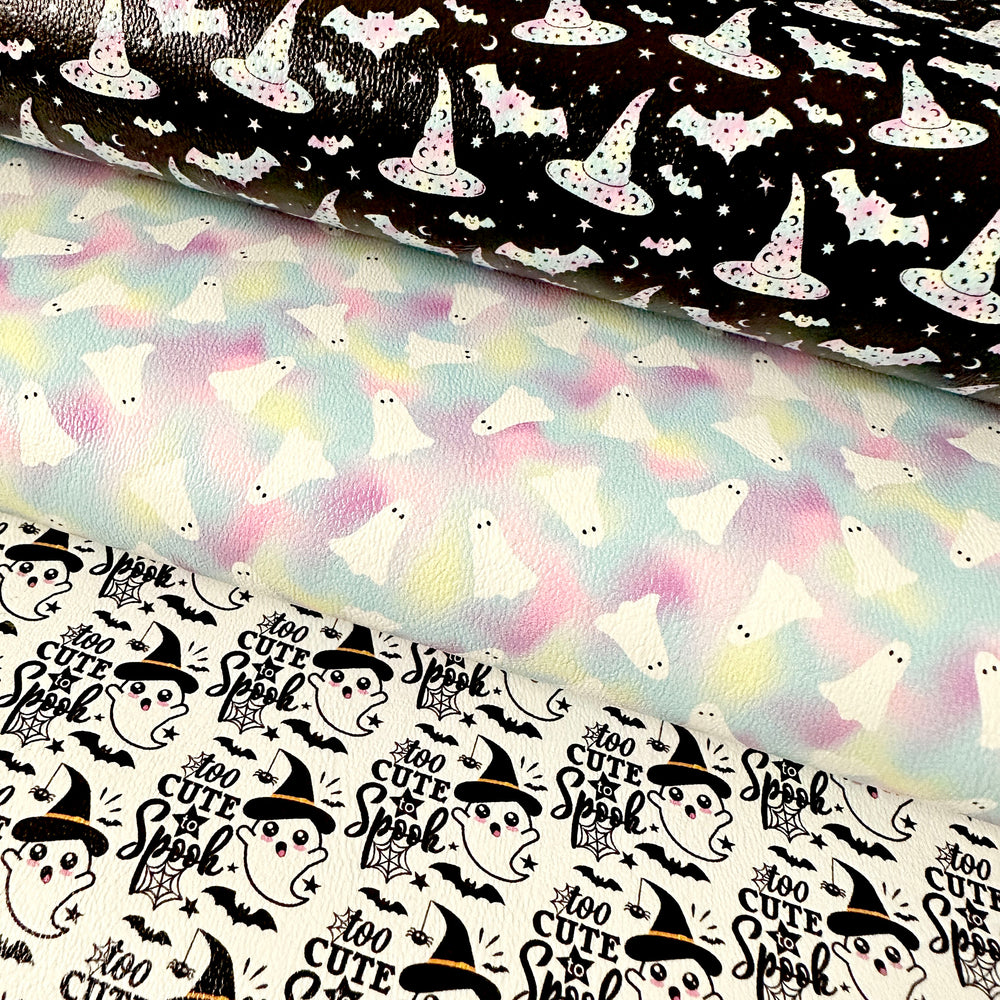 Halloween ghost rainbow - faux Pu Leather vinyl - canvas - choose Fabric material Sheets