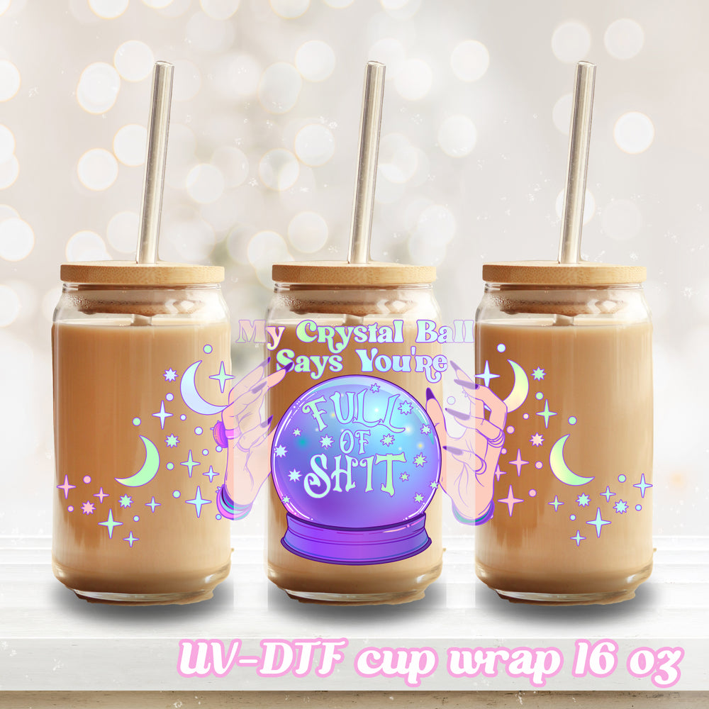 UV DTF - crystal ball full of sh*t - 16oz Libbey Glass Cup Wrap Only