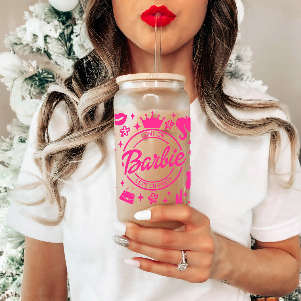 UV DTF - plastic pink girl - 16oz Libbey Glass Cup Wrap Only