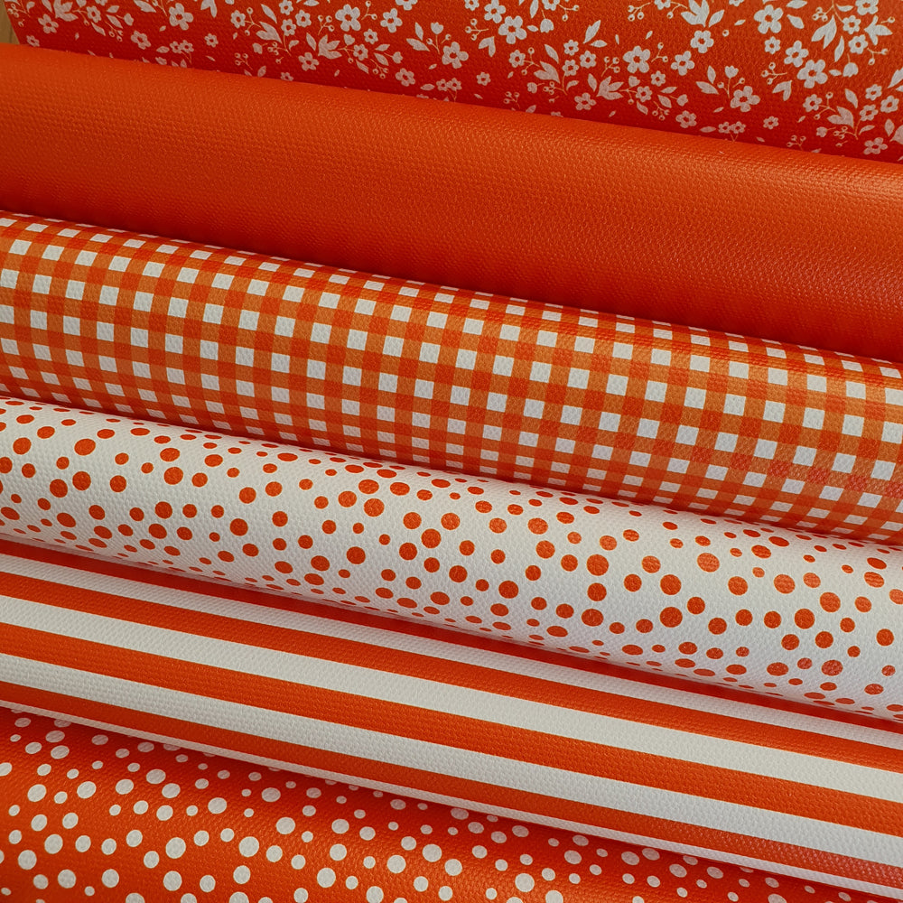 School orange gingham solid stripe dots flower - faux Pu Leather vinyl - canvas - choose Fabric material Sheets