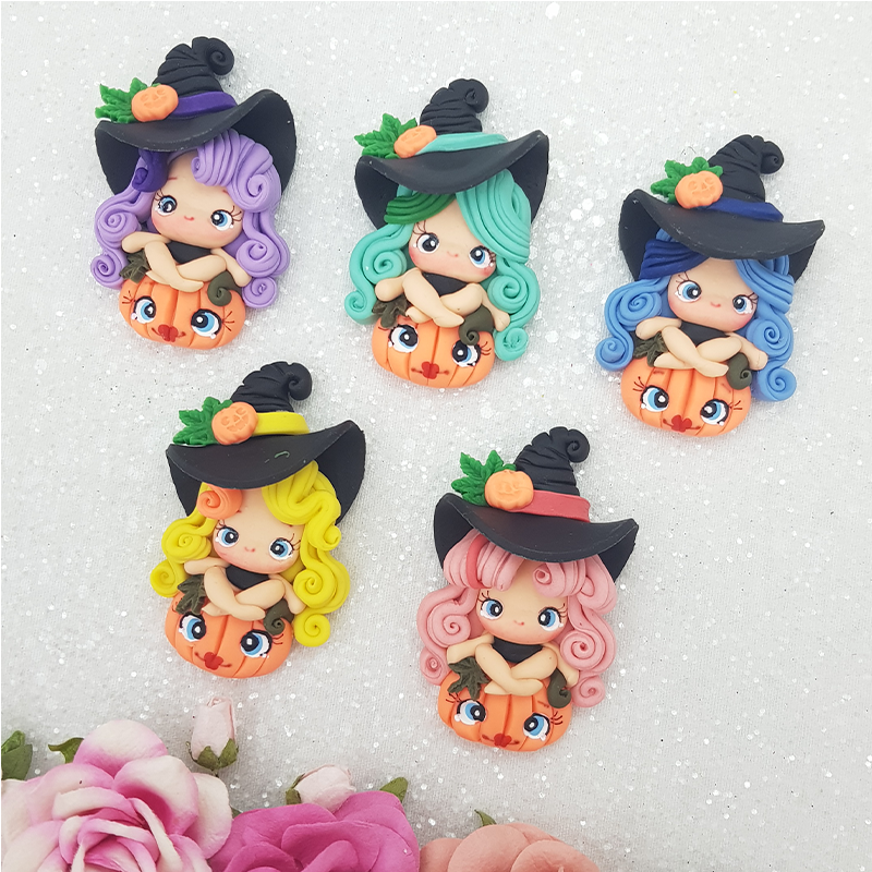 Halloween pumpkin witch - set of 5 - Embellishment Clay Bow Centre