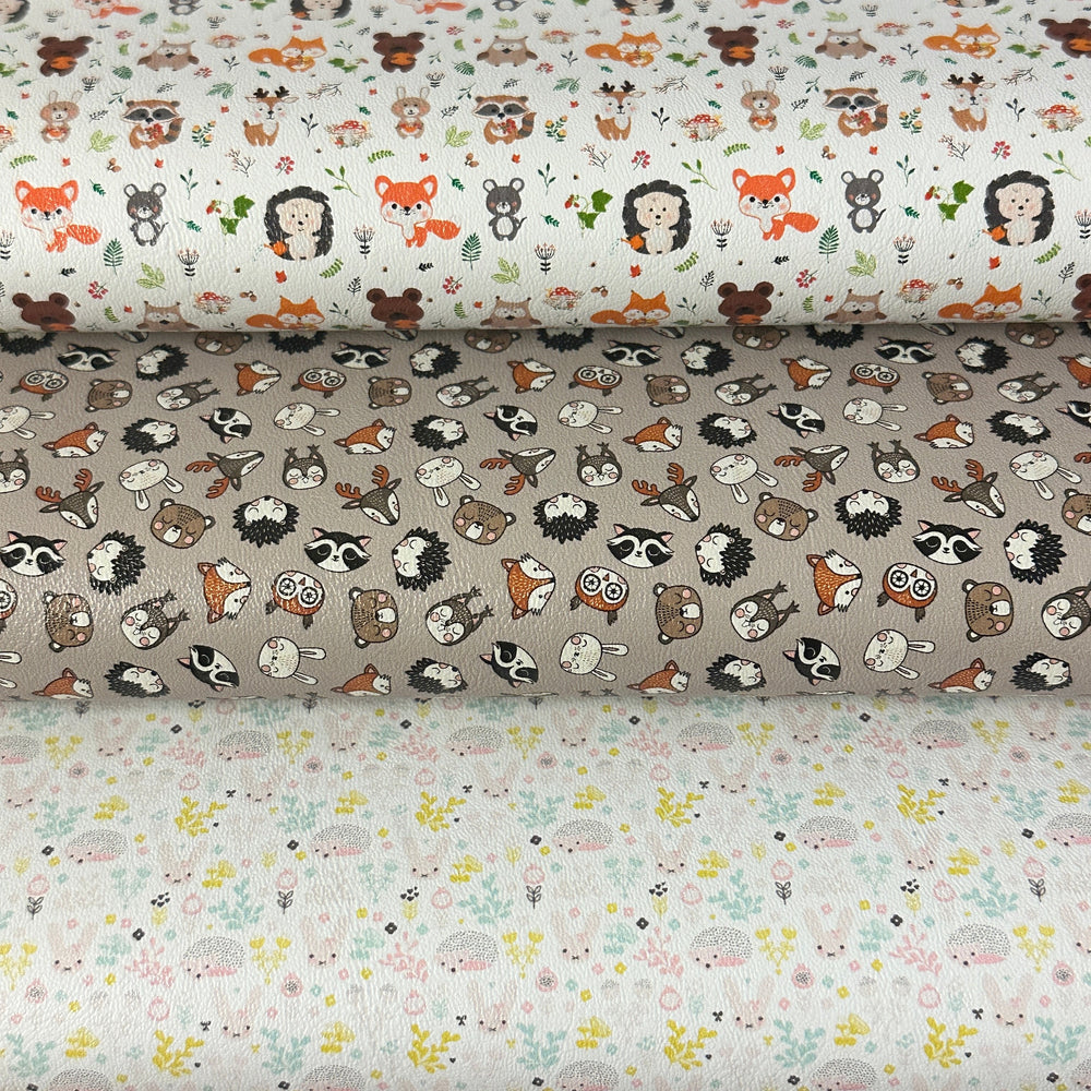 fall critter fox hedgehog - faux Pu Leather vinyl - canvas - choose Fabric material Sheets
