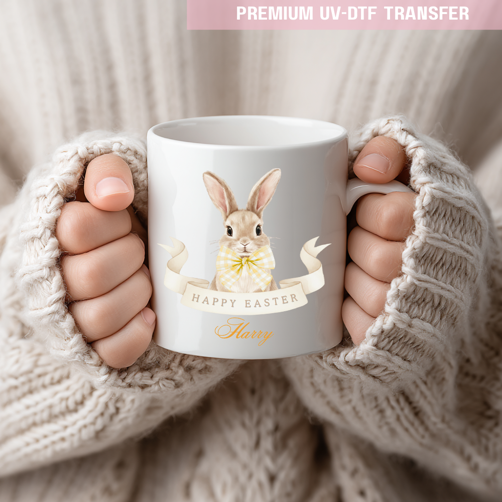 UV DTF decal - bunny - yellow - Easter - DTF ready to press