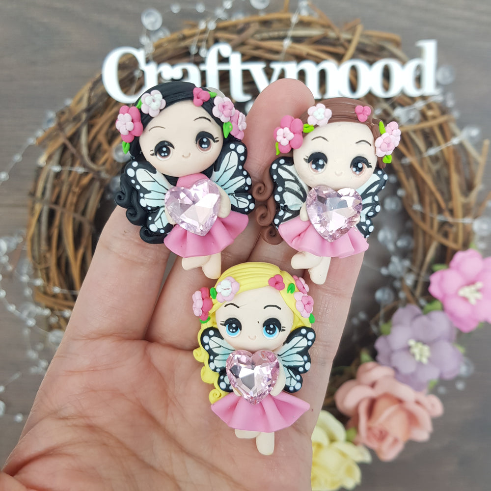 Max 2pcs each/person Butterfly girls with heart jewel - Embellishment Clay Bow Centre