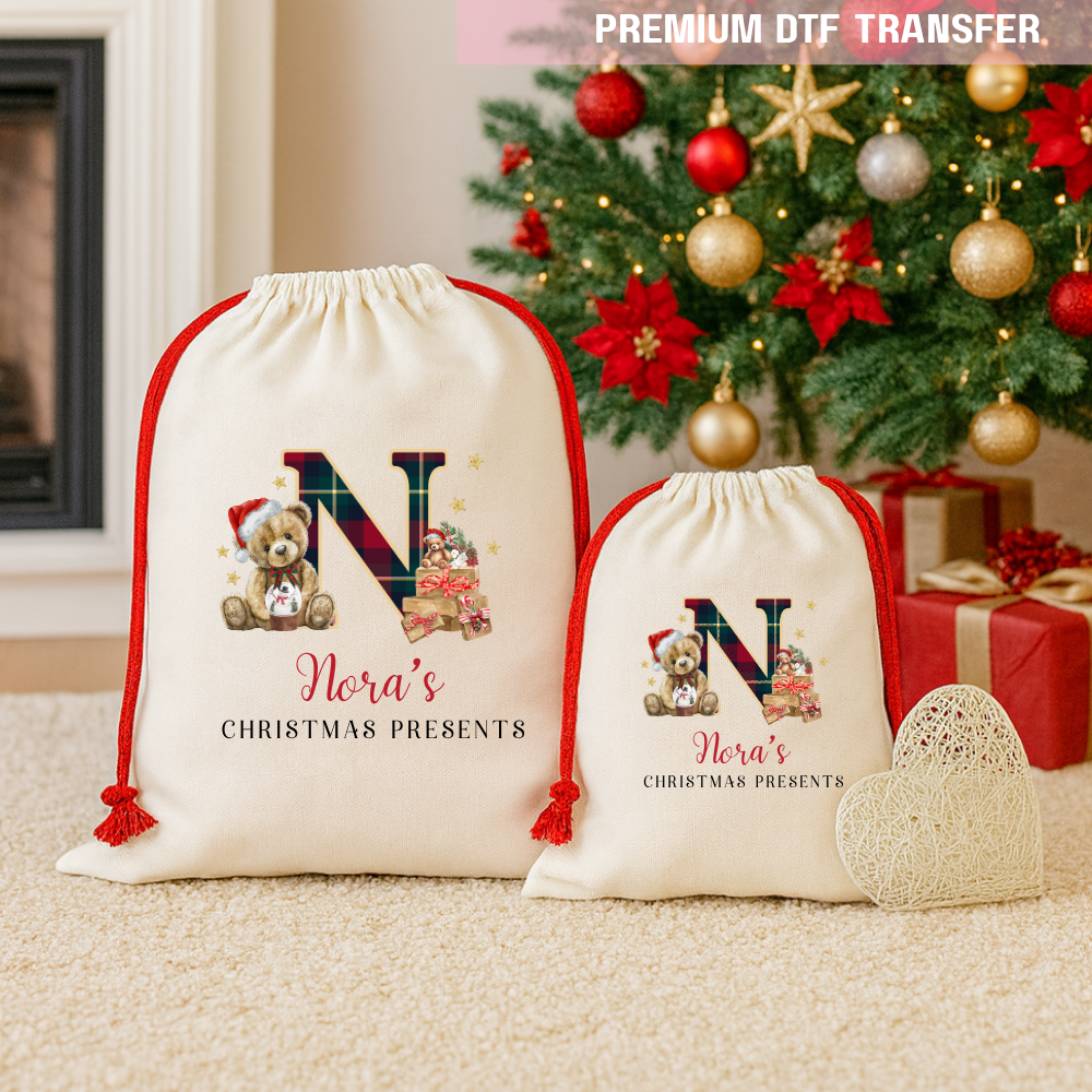 DTF Transfer - My First Christmas teddy present - DTF ready to press