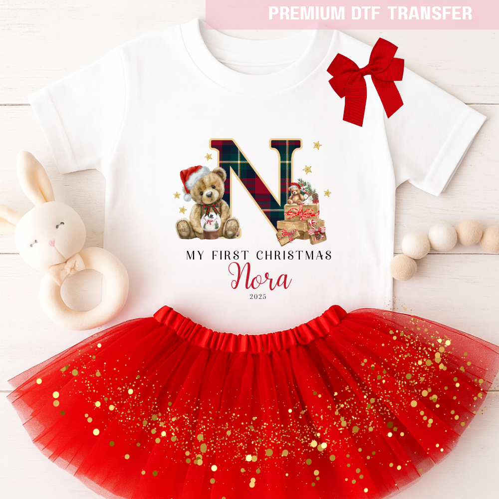 DTF Transfer - My First Christmas teddy present - DTF ready to press