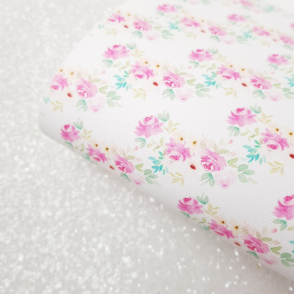 Floral - faux vegan Leather vinyl - canvas - choose Fabric material Sheets