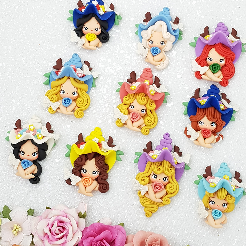Princess in deer hat - set of 10 - Embellishment Clay Bow Centre