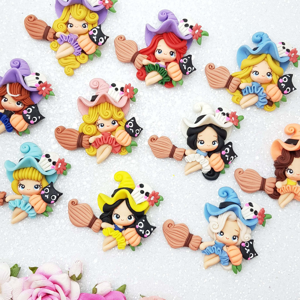 princess witch set of 10 - Handmade Flatback Clay Bow Centre