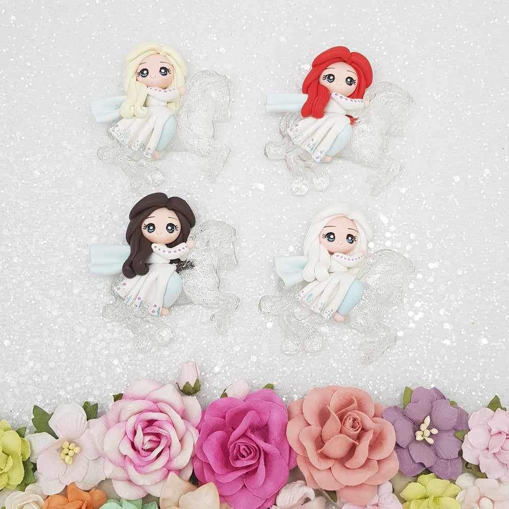 Winter princess riding ice horse - Handmade Flatback Clay Bow Centre