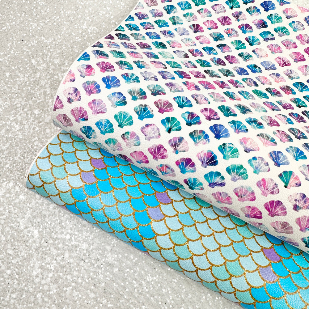clamshell Mermaid fish scales tails sea - Pu Leatherette vinyl - canvas - choose Fabric material Sheets