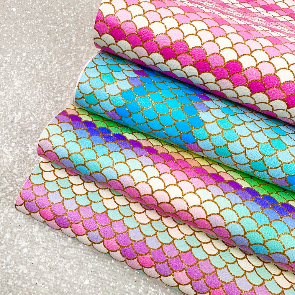 Mermaid fish scales tails sea siren - Pu Leatherette vinyl - canvas - choose Fabric material Sheets
