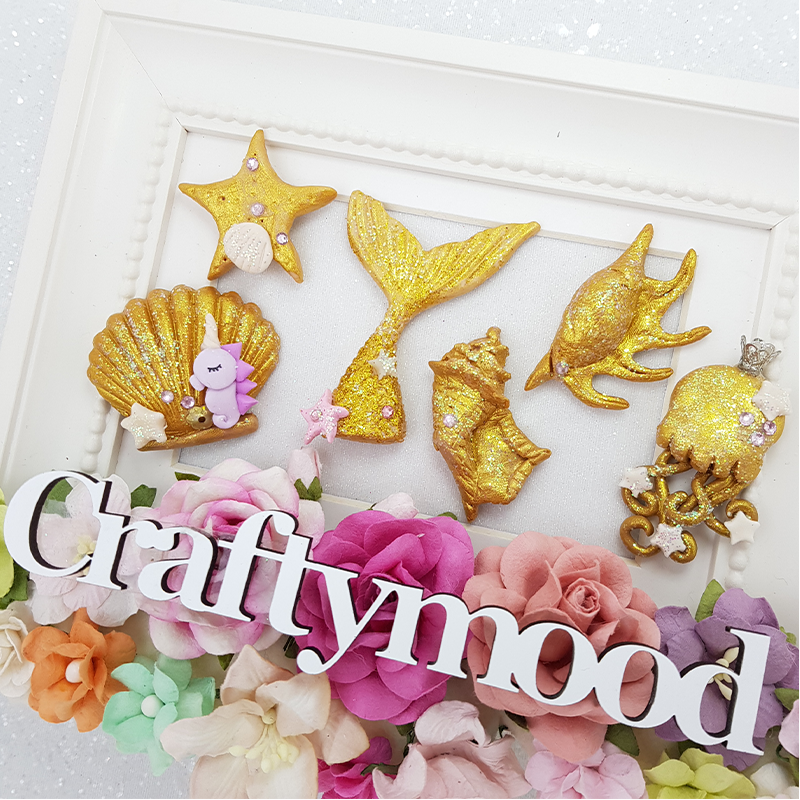 Sealife golden shell - Handmade Flatback Clay Bow Centre
