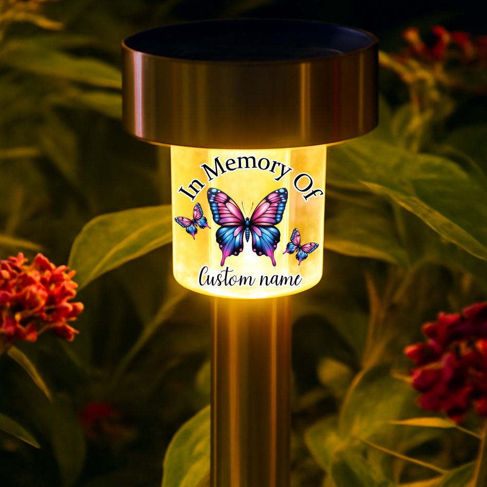 In memory of (custom name) UV DTF decal solar light - memorial pink blue butterfly