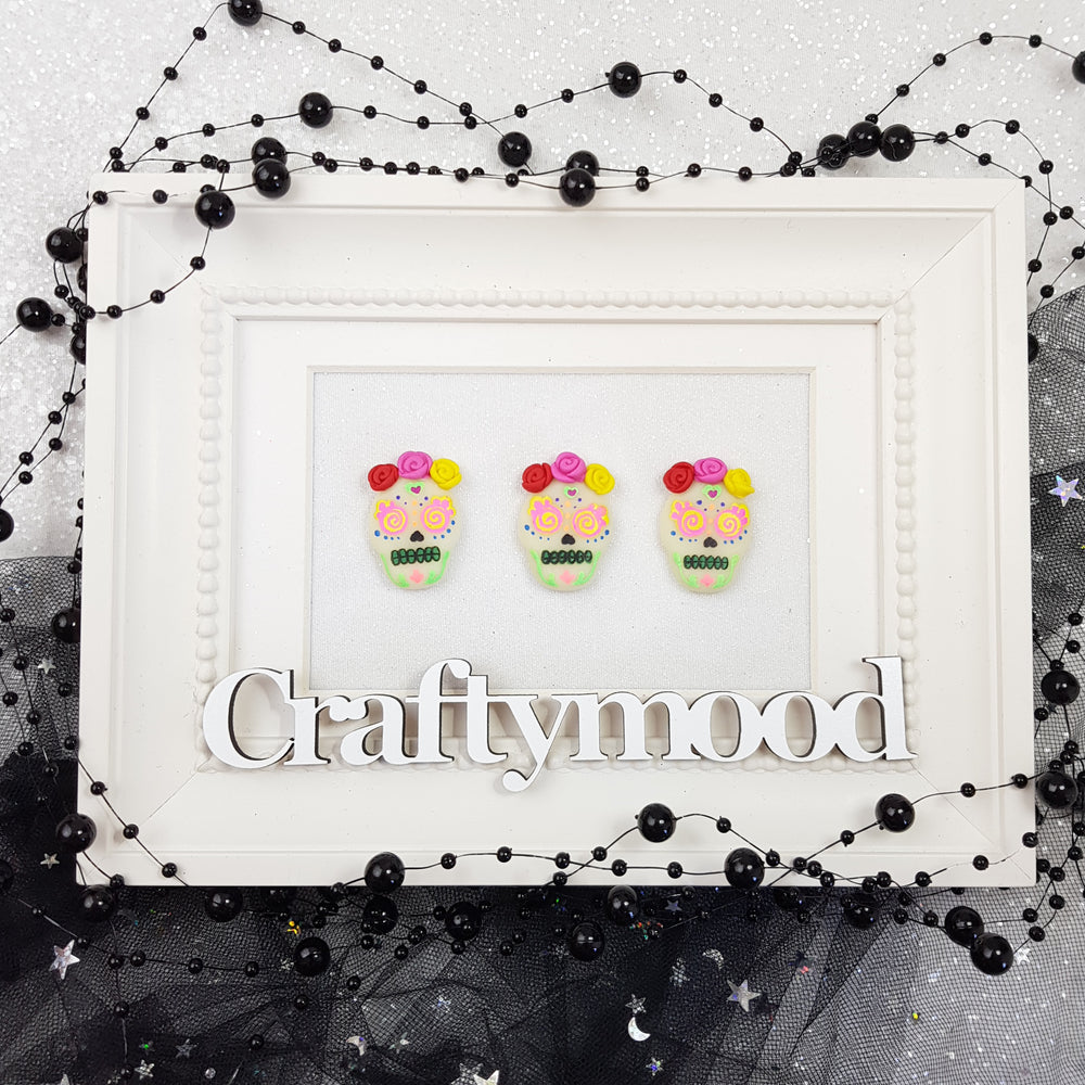 Glow in the Dark Skull - Handmade Flatback Clay Bow Centre