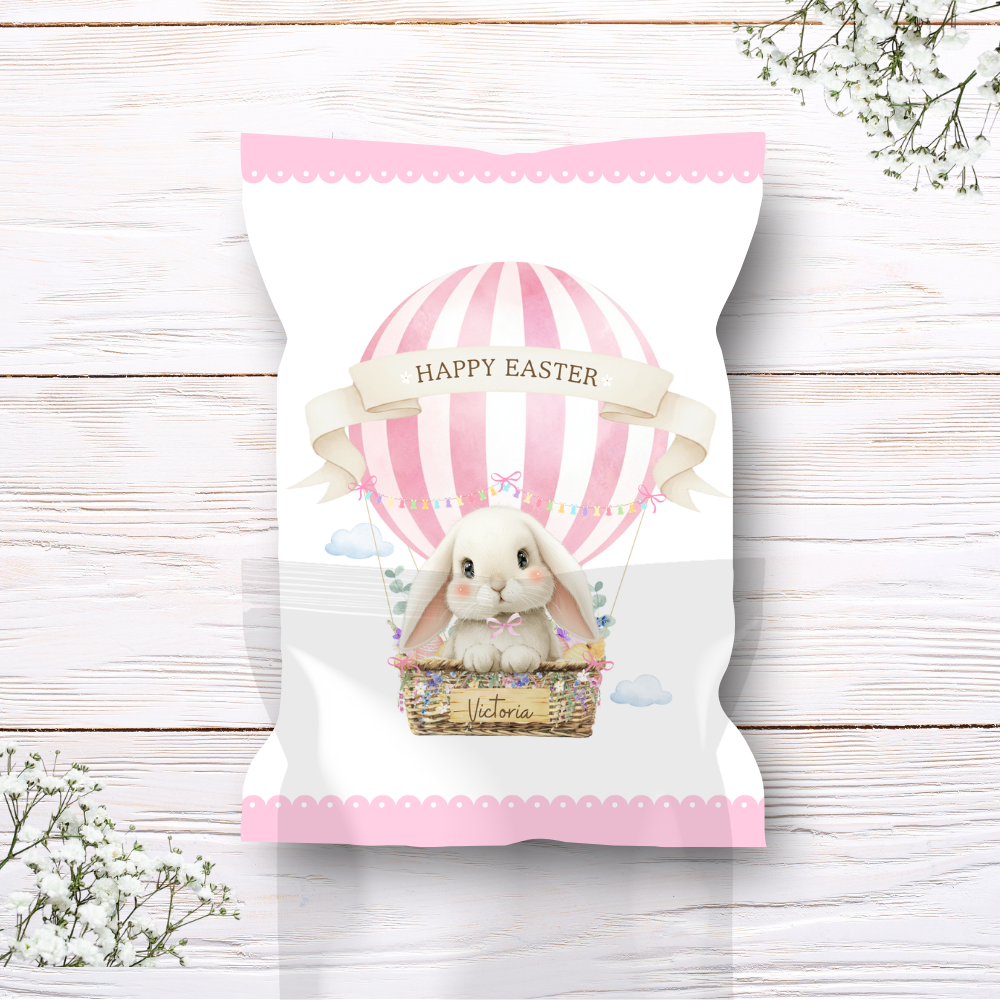Printed range - Treat package - pink - white bunny rabbit hot air balloon easter
