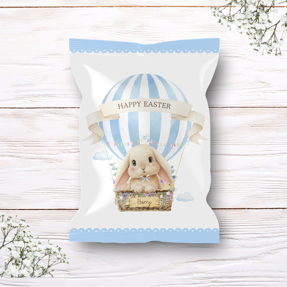 Printed range - Treat package - blue - bunny rabbit hot air balloon easter