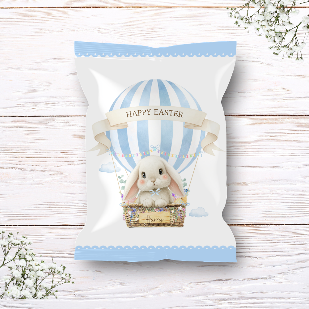 Printed range - Treat package - blue - white bunny rabbit hot air balloon easter