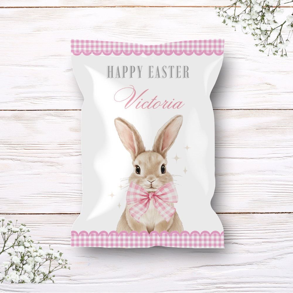 Printed range - Treat package - pink - bunny rabbit gingham bow easter
