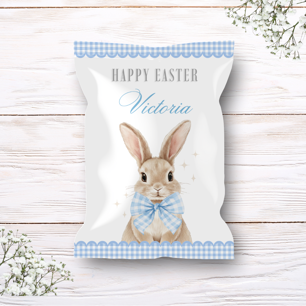 Printed range - Treat package - blue - bunny rabbit gingham bow easter